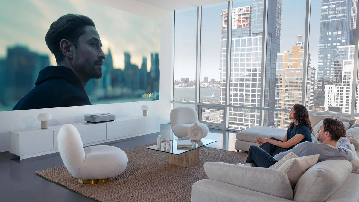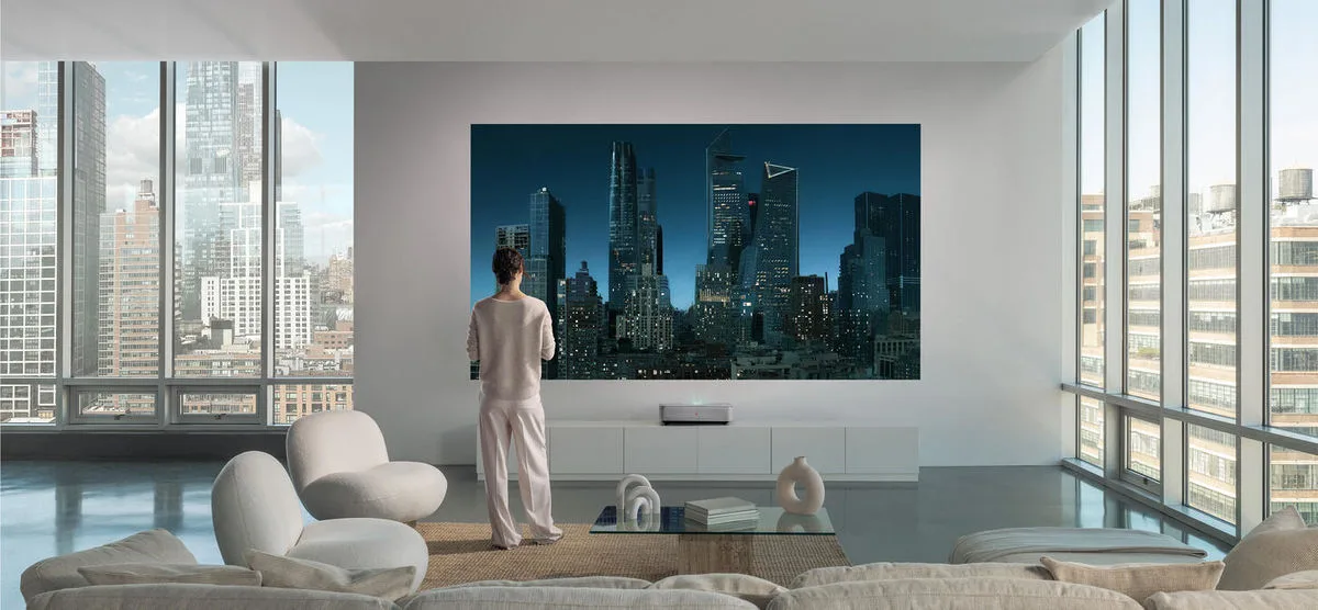 Le projecteur Leica Cine 1 est doté d’une lampe triple laser RVB très lumineuses qui lui permet de couvrir un large espace colorimétrique pour afficher de superbes images en HDR10+ et en Dolby Vision. Elle garantit la projection d’images extrêmement réalistes et sa durée de vie est estimée à 25 000 heures environ, pour vous offrir de nombreuses années de divertissement. Équipé d’un tuner TNT, câble et satellite, ce projecteur ultra courte focale Leica Cine 1 accède également aux principaux services de streaming une fois connecté à Internet. Il dispose également de trois ports HDMI pour y connecter un lecteur Blu-ray 4K ainsi qu’une console de jeux vidéo et tout autre lecteur multimédia doté d’une sortie HDMI. La lecture de fichiers multimédia via ses ports USB est également permise. Enfin, côté audio, ce projecteur Leica peut compter sur sa barre de son intégrée de 2 x 25 watts pour reproduire les pistes audio Dolby Digital Plus et Dolby Atmos des films, des séries et des jeux vidéo.